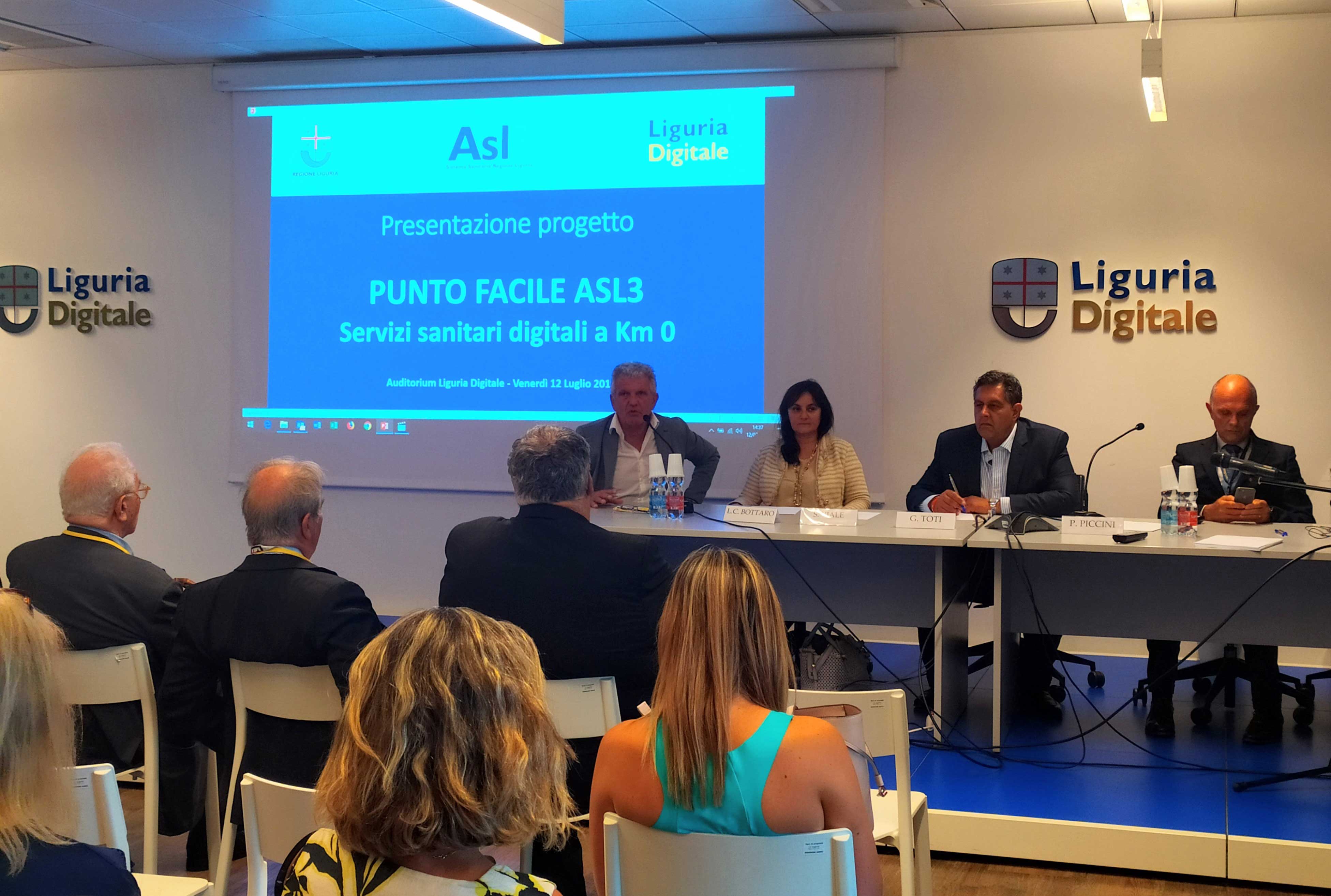 E’ stato presentato nella sede di Liguria Digitale – alla presenza del Presidente della Regione Liguria Giovanni Toti, del Vicepresidente e Assessore alla Sanità di Regione Liguria Sonia Viale, del Direttore Generale di Asl3 Luigi Carlo Bottaro e dell’Amministratore Unico di Liguria Digitale Paolo Piccini – il Progetto “Puntofacile Asl3”. Sono ventidue i primi totem multifunzione PuntofacileAsl3 già installati e attivi nelle sedi dei Distretti sanitari di Asl. La nuova rete nasce con l’obiettivo di semplificare l’accesso ai servizi sanitari digitali. Con PuntofacileAsl3 infatti è possibile ritirare i referti, pagare con bancomat e carta di credito il ticket delle prestazioni CUP, i referti di laboratorio e le prestazioni erogate in regime di libera professione. Un sistema intuitivo “touch” consente di eseguire le operazioni in modo veloce, sicuro e oltre l’orario degli sportelli.