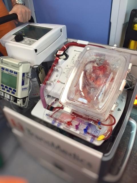 Con la pompa portatile di perfusione il cuore prelevato,  viene alloggiato, in maniera sterile, sotto un teca di plexiglass protettiva dove torna a battere grazie alla perfusione continua con il sangue del donatore, ossigenato e riscaldato a 34° C dal sistema stesso. “I parametri fisiologici vengono monitorati dall’equipe in modo continuo attraverso una consolle portatile, collegata con tecnologia wireless – spiega Russo-. In questo modo, i chirurghi e i perfusionisti che seguono il trasporto nel macchinario possono osservare l’andamento ed intervenire con modifica dei parametri, tra i quali il flusso e la pressione del sangue all’interno del cuore”.