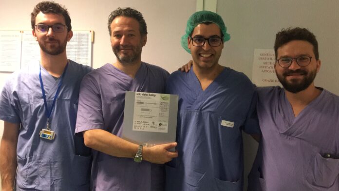«Chiudere il vaso sanguigno – prosegue il dott. Iannucci – incrementa le possibilità di un danno cerebrale residuo a lungo termine. Per questo motivo abbiamo scelto un approccio diverso utilizzando per la prima volta in Italia un nuovo stent di nuova generazione, che viaggia sul più piccolo microcatetere disponibile, anche se studiato per le più piccole arterie distali degli adulti, e lo abbiamo inserito in modo da farlo entrare comunque nell’arteria della nostra piccola paziente».