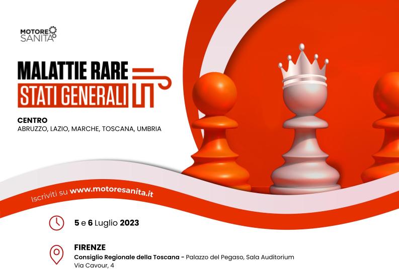 Al via agli “STATI GENERALI SULLE MALATTIE RARE – FOCUS CENTRO ITALIA: ABRUZZO, LAZIO, MARCHE, TOSCANA, UMBRIA”, promosso da Motore Sanità. Due giorni di lavoro, il 5 e il 6 luglio, a Firenze, presso il Consiglio Regionale della Toscana, con il patrocinio di Cittadinanzattiva, io Raro Associazione per la prevenzione e la cura dei tumori e malattie rare, Uniamo Federazione Italiana Malattie Rare e FNO TSRM e PSTRP.
