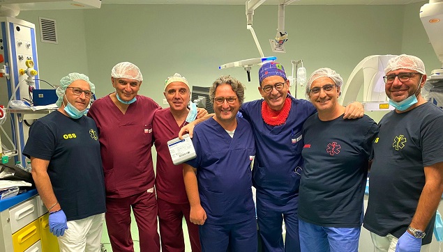 Ad eseguire l’intervento i dott.ri Massari, Musaico e Cannone con la collaborazione del responsabile della Elettrofisiologia di Andria dott. Gianfrancesco. Nello spirito di collaborazione dipartimentale, quindi, il paziente – ricoverato per scompenso acuto e trattato dalle dottoresse Malerba, Panunzio e Liotino esperte di Scompenso Cardiaco – è stato sottoposto a coronarografia presso la Sala di Emodinamica di Andria, a risonanza magnetica cardiaca presso la Radiologia di Trani e ad ecodobutamina per riserva contrattile dal dott. Scardigno presso la Cardiologia di Bisceglie.