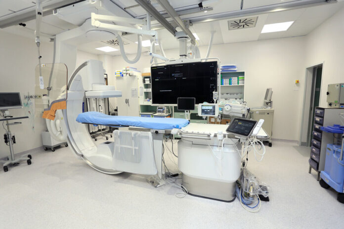 Il sistema angiografico è un macchinario radiologico avanzato utilizzabile sia in fase diagnostica sia per i trattamenti percutanei, e che consente, attraverso le radiazioni ionizzanti, cioè l’emissione di raggi X, di vedere le strutture del cuore iniettando contemporaneamente del liquido di contrasto all’interno delle arterie coronariche.