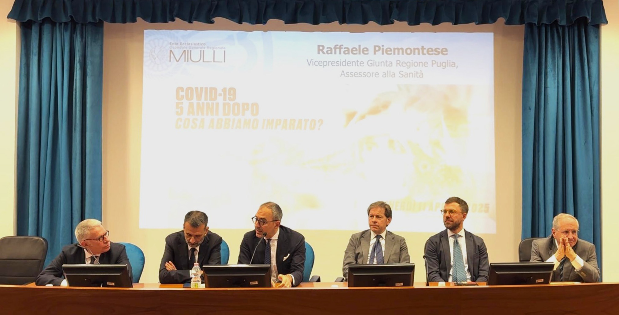 Vito Montanaro, Direttore del Dipartimento Salute della Regione Puglia, ha ricordato l’efficacia delle azioni messe in campo: “A cinque anni dalla prima ondata della pandemia, la Puglia si è rivelata come una delle regioni più efficaci in Italia nella gestione dell’emergenza Covid. La cabina di regia, guidata dal presidente Emiliano e dall’allora direttore del Dipartimento Salute, ha pianificato con rapidità e flessibilità una rete ospedaliera modulabile, che ha permesso di contenere i contagi (5.600 da marzo a giugno 2020) e mantenere attivi anche i servizi ordinari. Fondamentale è stato anche il contributo dell’Ospedale Miulli, con 200 posti letto messi a disposizione, che ha salvato migliaia di vite. Le decisioni, spesso in anticipo rispetto alle linee nazionali, hanno permesso alla Regione di affrontare l’emergenza con prontezza e risultati concreti, diventando un modello organizzativo di riferimento.”