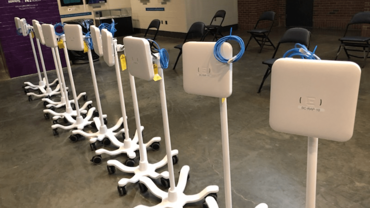 Gli access point ExtremeWireless sono stati installati su carrelli, e questo ha permesso di portare il segnale Wi-Fi presso le stazioni di vaccinazione, che si spostavano tra gruppi di pazienti per ridurre i tempi morti dovuti alla necessità di farli riposare dopo l’iniezione e alla ridotta mobilità delle persone più anziane.