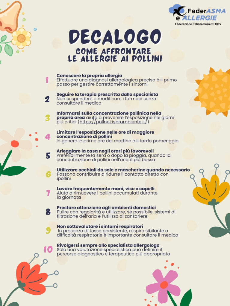 Per sensibilizzare la popolazione e promuovere una corretta gestione delle allergie respiratorie, Federasma e Allergie ODV diffonde oggi, in occasione del primo giorno di primavera, un decalogo di consigli utili per affrontare la stagione dei pollini in modo consapevole e sicuro.