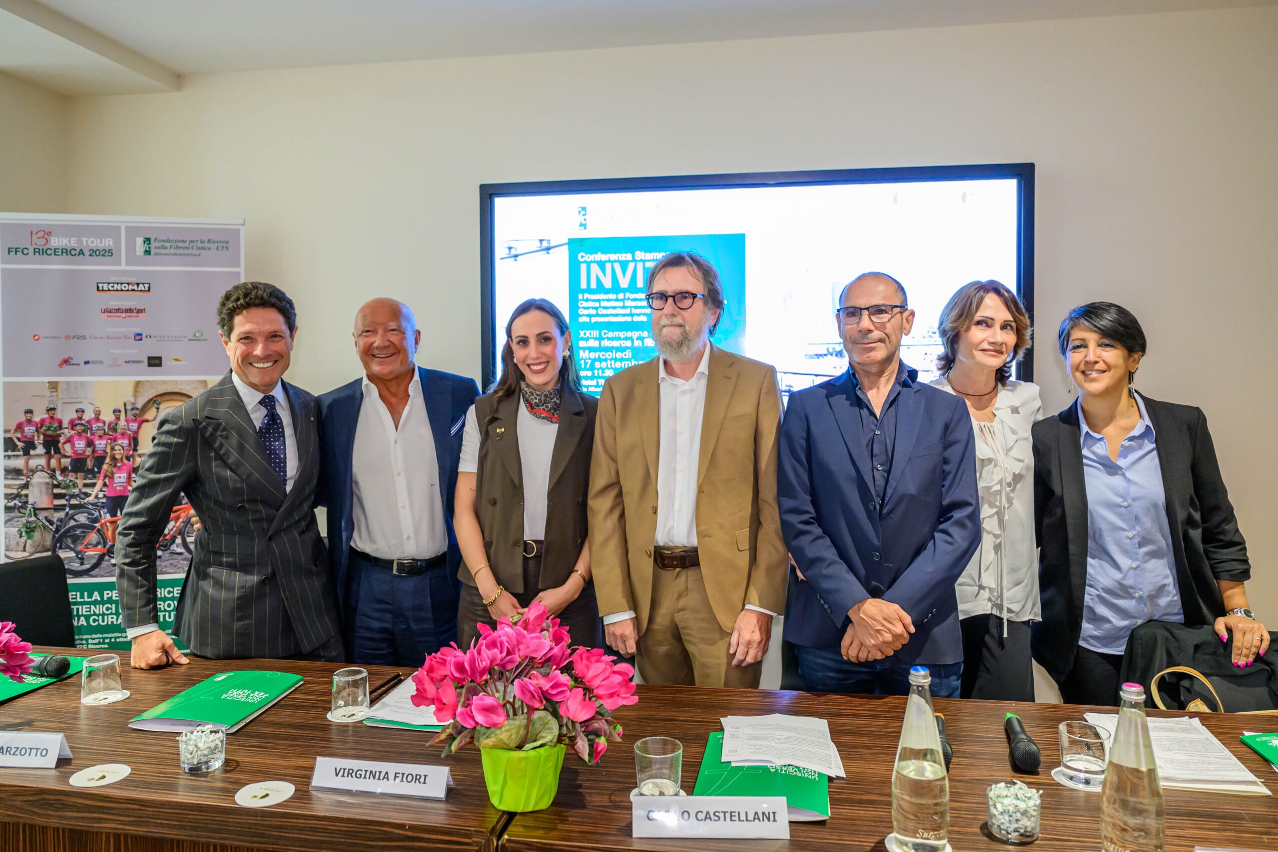 All’evento, moderato dalla giornalista Francesca Roveda, sono intervenuti: il presidente FFC Ricerca Matteo Marzotto, il direttore scientifico FFC Ricerca Carlo Castellani, Virginia Fiori, testimonial FFC Ricerca e persona con FC, l’ex CT della Nazionale Italiana di Ciclismo Davide Cassani e il campione paralimpico Fabrizio Macchi, in rappresentanza dei campioni del Charity Bike Tour, e Angela Antonini, responsabile Positive Impact di Tecnomat.