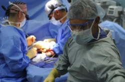 Il paziente, trapiantato dall’equipe del Prof. Vivarelli nel 2016 per una rara malattia, era vissuto senza particolari problemi fino a qualche mese fa. Col tempo, a causa della nuova chiusura delle vene che portano il sangue fuori dal fegato si erano formati dei trombi venosi all’interno dell’organo con dilatazione delle vene addominali ed in particolare del duodeno, con formazione di una varice di enormi dimensioni che, in caso di rottura davvero imminente, avrebbe prodotto una emorragia massiva: “Il fegato del paziente era di nuovo cirrotico e non esistevano troppe alternative, quell’ostacolo andava rimosso e soprattutto era diventata una corsa contro il tempo, spiegano il professor Svegliati Baroni e il dottor Roberto Candelari, le cui rispettive équipe – hanno collaborato Laura Schiadà, Elisa Malena, Marco Macchini, Mario Torresi – sono state sempre a stretto contatto per tutto il periodo necessario. Con i colleghi chirurghi abbiamo a lungo discusso, ma un nuovo trapianto non era proponibile, e non avevamo molte alternative con il fegato compromesso e quelle enormi dilatazioni venose, si rischiava o una nuova insufficienza epatica o una emorragia massiva: bucare la vena cava avrebbe provocato conseguenze gravissime. Del resto sottoporlo a un nuovo trapianto o lasciare tutto com’era, quindi con quella varice pronta a esplodere da un momento all’altro non ci dava un quadro di quella varice pronta a esplodere da un momento all’altro non ci dava un quadro di alternative troppo ampio. Avendo creato un rapporto fiduciario col paziente, gli abbiamo presentato lo spettro preciso della situazione, compreso il rischio molto alto dell’intervento che volevamo programmare Noi eravamo convinti di farlo, ma lui andava informato e così è successo alla fine”.
