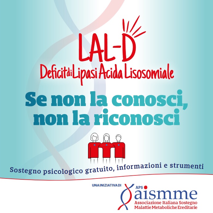 Aismme, l’Associazione Italiana Sostegno Malattie Metaboliche ereditarie che segue i pazienti di questa patologia, ha lanciato la campagna “LAL-D se la non conosci, non la riconosci” che punta proprio a sensibilizzare e informare possibili pazienti e famiglie, ma anche pediatri di libera scelta, medici di famiglia e specialisti. Per la sua valenza la campagna gode del patrocinio della SIGENP – Società Italiana di Gastroenterologia, Epatologia e Nutrizione Pediatrica.