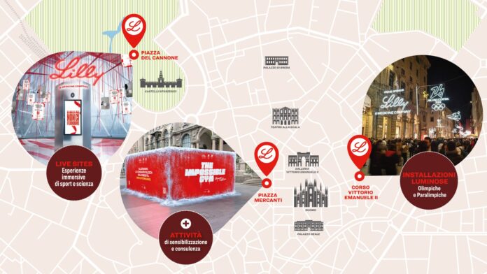 Si parte nel cuore di Milano, in Corso Vittorio Emanuele II, dove Lilly ha acceso l’area pedonale fino a via Orefici con installazioni luminose ispirate ai 22 pittogrammi delle discipline dei Giochi Olimpici e Paralimpici Invernali, che saranno visibili fino a domenica 15 marzo.