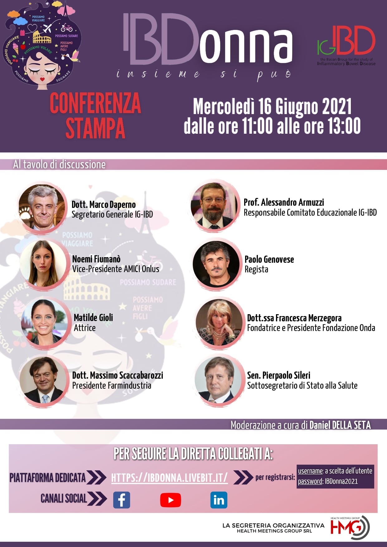 La campagna di IG-IBD “Insieme si può” focalizzata sulla donna verrà presentata il prossimo 16 giugno dalle 11 alle 13 in un Conferenza Stampa online. In questa occasione sarà presentato lo spot girato dal regista Paolo Genovese con protagonista l’attrice Matilde Gioli che sarà trasmesso su Sky dall’11 al 25 luglio: pochi secondi per un messaggio incoraggiante, che permetta alle donne affette da MICI di non scoraggiarsi e di acquisire la consapevolezza che, nonostante le patologie, è possibile avere figli, viaggiare, mangiare e soprattutto sognare. Parteciperanno alla Conferenza Stampa, moderata dal giornalista scientifico Daniel Della Seta, il Sottosegretario alla Salute Sen. Pierpaolo Sileri; il Dott. Marco Daperno, Segretario Generale IG-IBD; il Prof. Alessandro Armuzzi, Responsabile Comitato Educazionale IG-IBD; il Presidente di Farmindustria Dott. Massimo Scaccabarozzi; Noemi Fiumanò, Vice-Presidente AMICI onlus; il regista Paolo Genovese; l’attrice Matilde Gioli; la dott.ssa Francesca Merzegora, Fondatrice e Presidente Fondazione Onda.