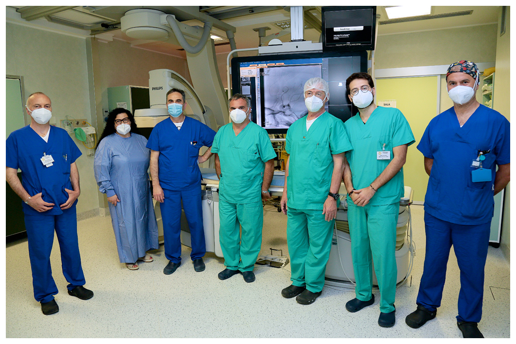Operati in un’unica seduta due aneurismi cerebrali grazie ad una mini sonda introdotta dall’arteria femorale