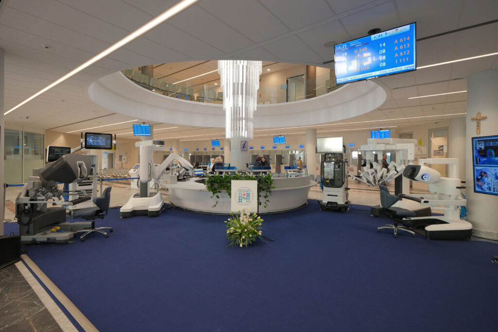 La hall della struttura si è trasformata per poche ore in una “sala operatoria” dove sono stati collocati i robot chirurgici da Vinci 5 e da Vinci single port, i più avanzati sistemi robotici per la chirurgia mini-invasiva. Accanto ad essi, il broncoscopio robotico ION, l’ultima frontiera per la diagnosi precoce del tumore del polmone, in particolare di quelle neoplasie difficilmente raggiungibili dai sistemi di biopsia tradizionale. L’inaugurazione ha riguardato anche i lavori di ampliamento e restyling del Pronto Soccorso, che sono stati illustrati attraverso un video.